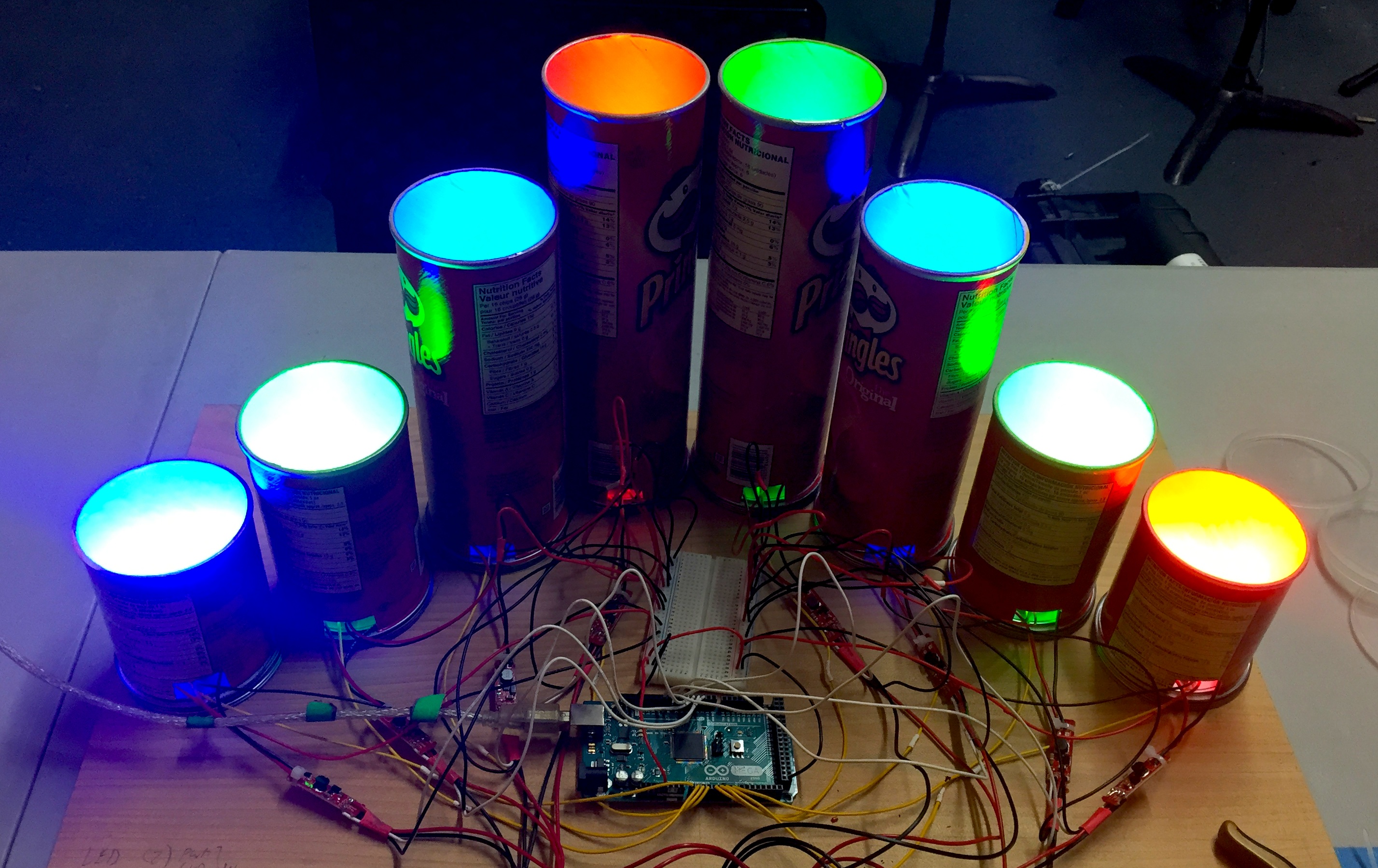Pringles Light Theremin (2015) - IR sensors, 1W RGB LEDs, Arduino Mega, MAX/MSP, Pringles Cans Air Marimba (January 2010) - Play the Air Above the Bars |